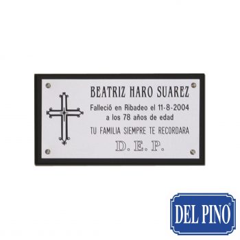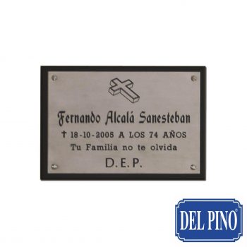 CEMEN-039 – Placa de cementerio en Aluminio Plata Brillo + Fondo Metac. Negro