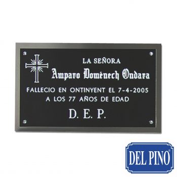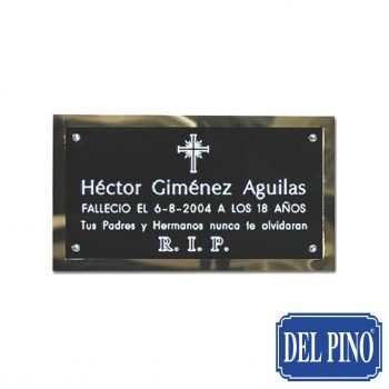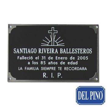 CEMEN-048 – Placa de cementerio en Aluminio Negro Brillo + Fondo Acero Brillo