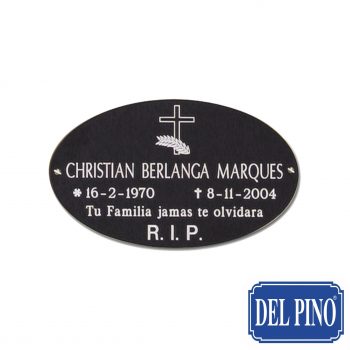 CEMEN-049 – Placa de cementerio en Aluminio Negro Brillo + Fondo Acero Brillo