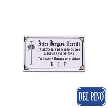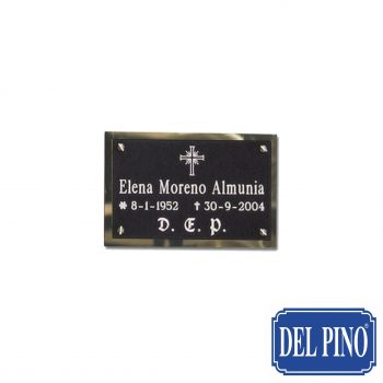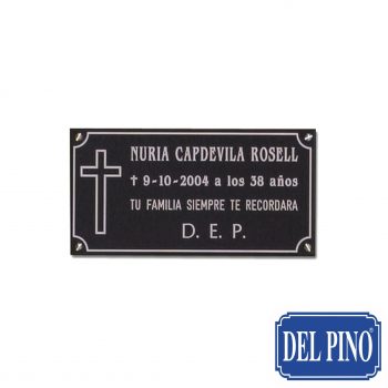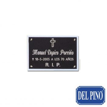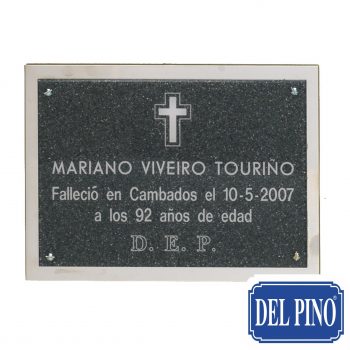 CEMEN-059 – Placa de cementerio en Aluminio Negro Brillo + Fondo Acero Brillo