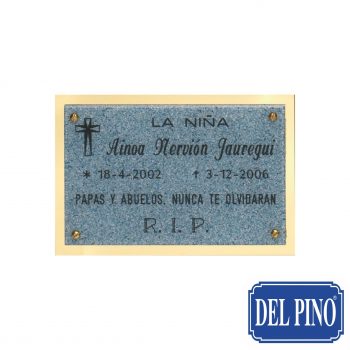 CEMEN-062 – Placa de cementerio en Granitex Azul + Fondo Alum. Oro Brillo