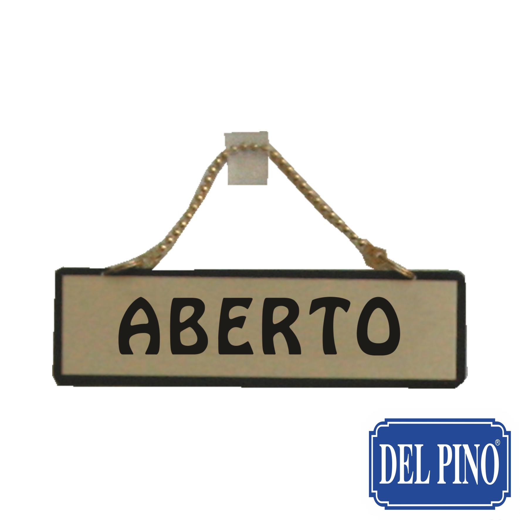 2 Placas en aluminio ORO mate de 165 x 40mm serigrafiadas con ABERTO-PECHADO y pieza central de plástico negro con cantos pulidos de 175 x 50mm.