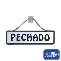 2 Placas en aluminio PLATA mate de 165 x 40mm serigrafiadas con ABERTO-PECHADO y pieza central de plástico negro con cantos pulidos de 175 x 50mm.