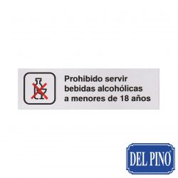 Texto: Prohibido servir bebidas alcoholicas a menores de 18 años. Medida de 150×45 mm.
