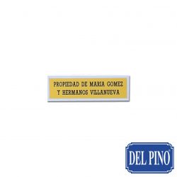 Placa de cementerio en aluminio oro brillo (140x35mm) con fondo acero brillo. Medida 150 x 45mm. En el precio marcado entra 2 líneas para mas lineas ver Tarifa A página 19
