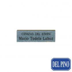 Placa de cementerio en granitex azul. Medida 140 x 40mm. En el precio marcado entra 2 líneas para mas lineas ver Tarifa A página 19
