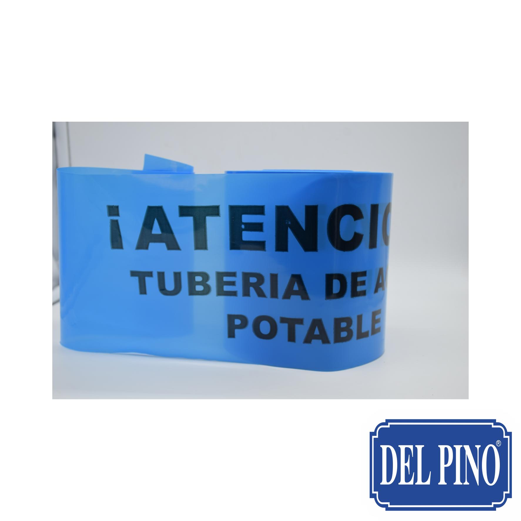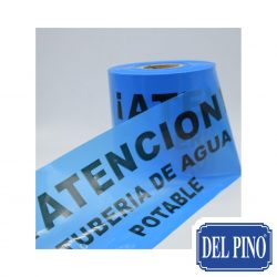 Cinta señalizadora de PVC con texto: Atención tubería de agua.