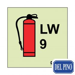 Señal de extintor hídrico de 9 litros.
