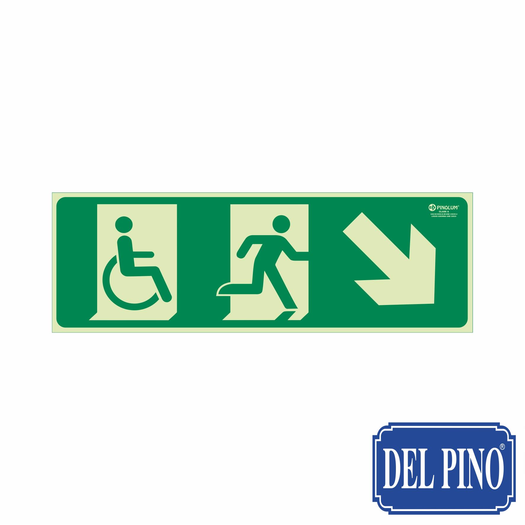 Señal de salida de emergencia minusválidos con flecha hacia abajo a la derecha.