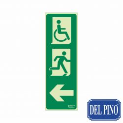 Señal de salida de emergencia minusválidos con flecha hacia la izquierda.