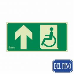 Señal de salida de emergencia minusválidos con flecha hacia arriba sin texto.