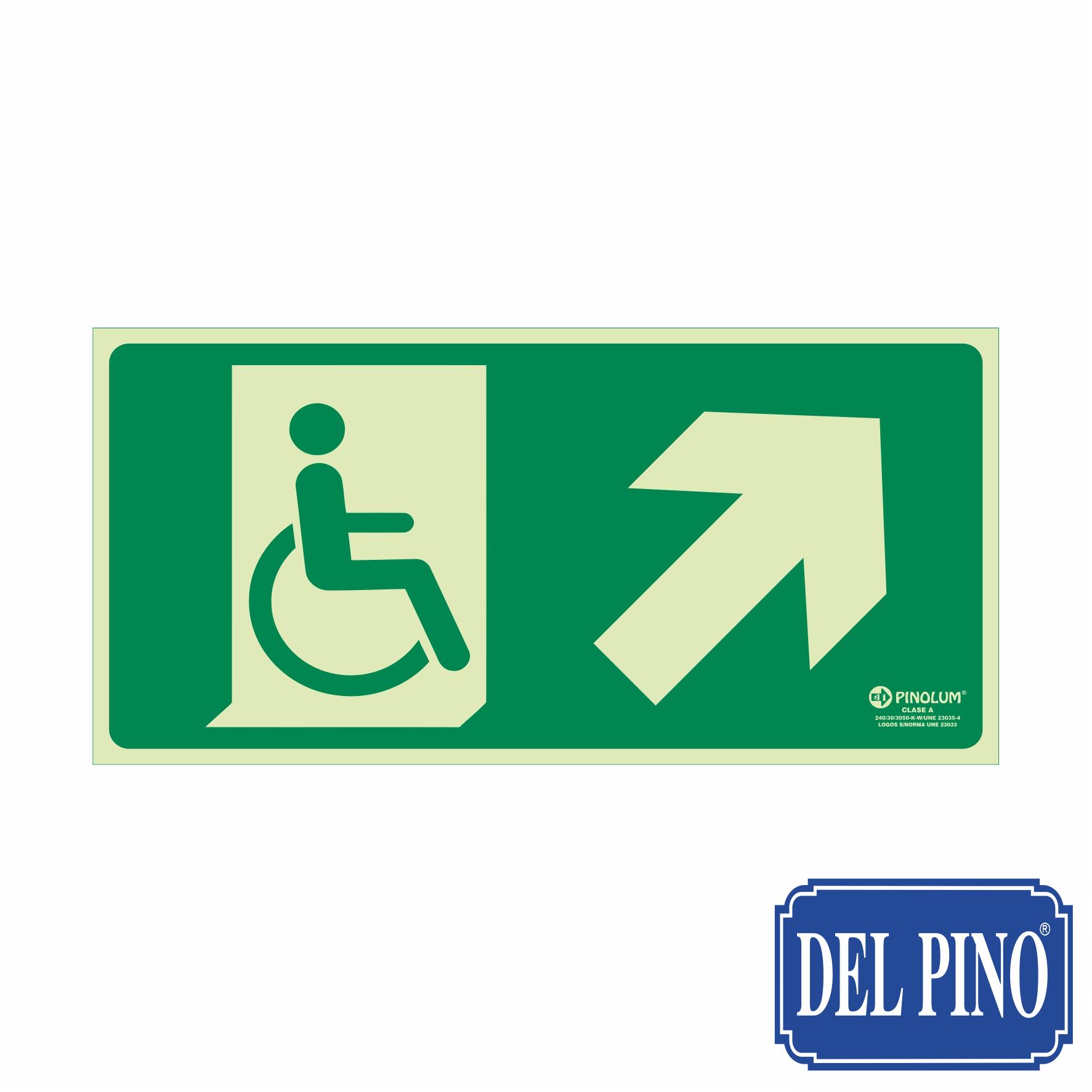 Señal de salida de emergencia minusválidos con flecha hacia arriba a la derecha sin texto.