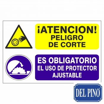 Señal combinada de andamiaje incompleto y es obligatorio el uso de cinturón de seguridad. Textos y logos en vinilo impreso según cantidad podrían ir serigrafiados.