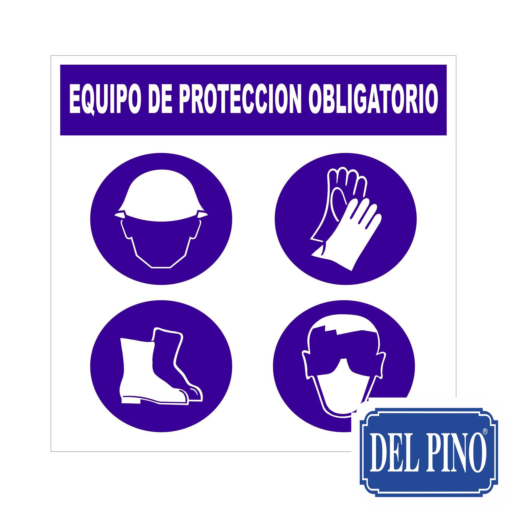 Señal de equipo de protección obligatorio. Medida 495 x 495mm. Altura de los símbolos 165mm.