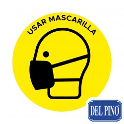 Rotulo adhesivo para suelo con el texto “Usar Mascarilla”