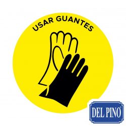 Rotulo adhesivo para suelo con el texto “Usar Guantes”