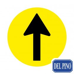 Rotulo adhesivo para suelo con el  logo de una flecha de dirección obligatoria.