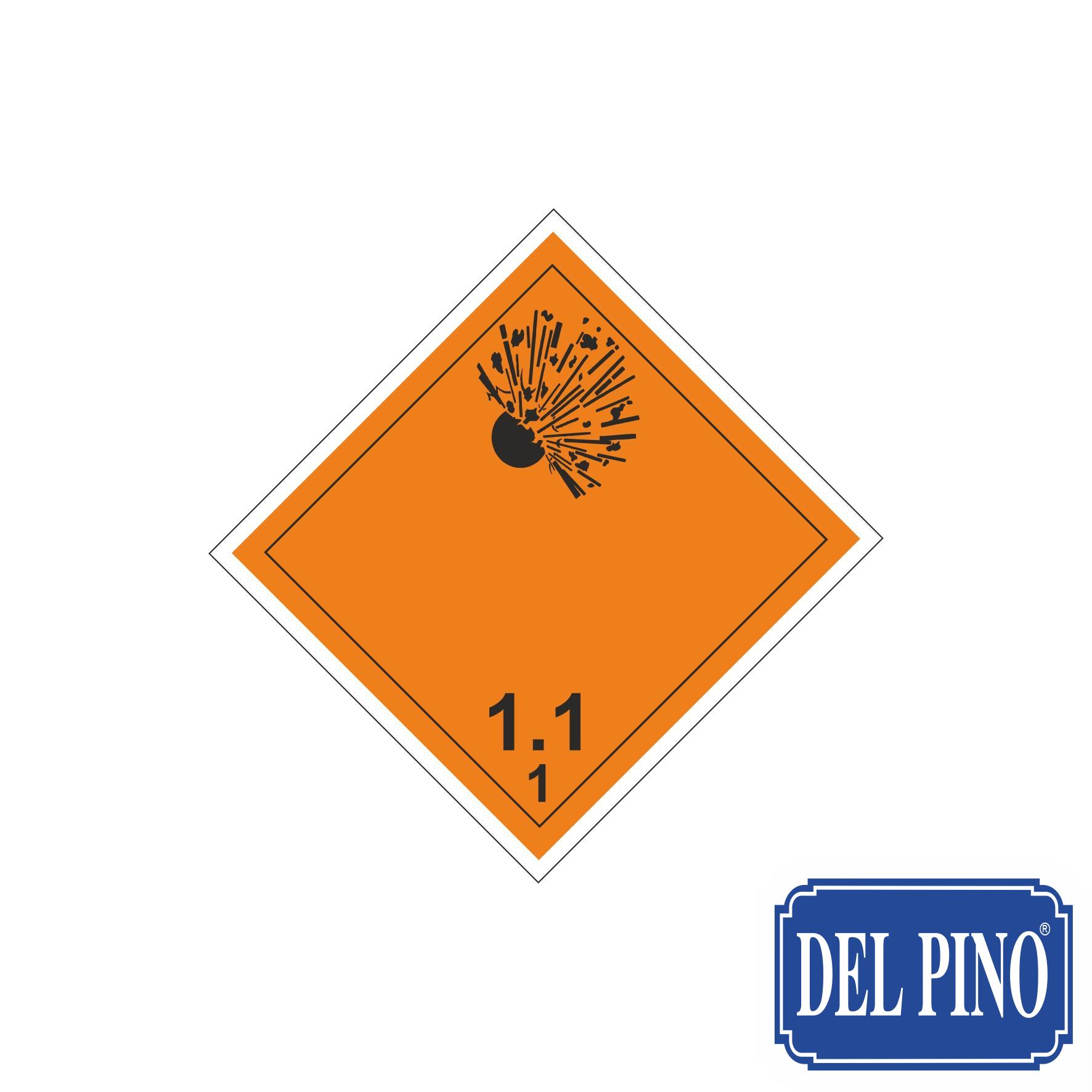 Señal de transporte de mercancías peligrosas por carretera. Nº 1.1 Riesgo es explosión división 1.1. Vea precios en Tarifa B página 73-74.