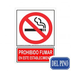 Señal Ley antitabaco: Prohibido fumar en este establecimiento. Castellano. Con referencia a la Ley 28/2005 de 26 de diciembre modificada por la Ley 42/2010 de 30 de septiembre.