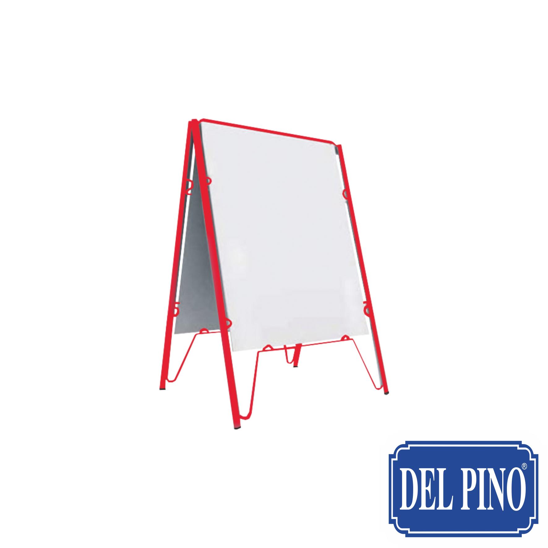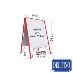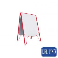 Caballete para pizarra blanca a doble cara. Fabricado en acero y pintado en epoxi. Se le pueden colocar tableros blancos (rotuladores) o pizarra verde (tizas). Medida 116×64 cm. Superficie útil 100×59 cm. Vea precios en Tarifa B página 88.