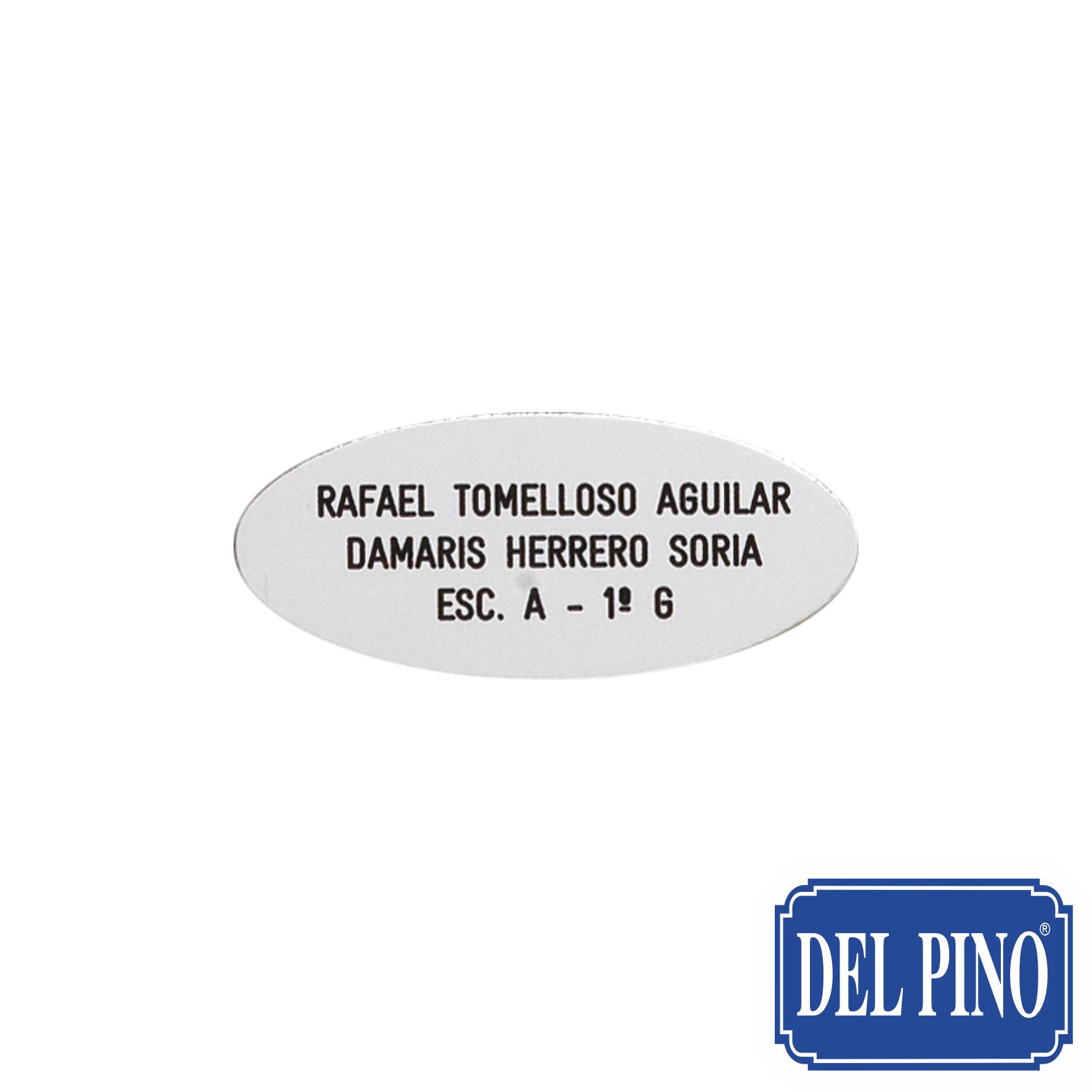 Placa grabada para buzon de aluminio plata. Medida estándar 70x30mm en forma ovalada. En el precio marcado entran 3 lineas en la medida indicada. Ver precios en Tarifa A página 2.