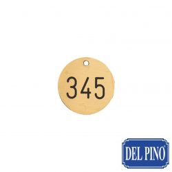 Colgante en latón mate de 0 65 mm Gr. Diámetro 35mm. En el precio marcado entra 3 números para mas líneas o números ver Tarifa A página 40.
