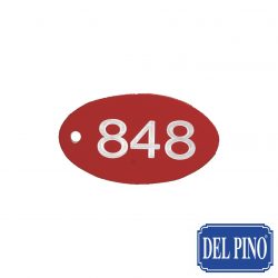 Colgante en aluminio rojo de 1 mm Gr. Ovalada de 60 x 34mm. En el precio marcado entra 3 números para mas líneas o números ver Tarifa A página 40.