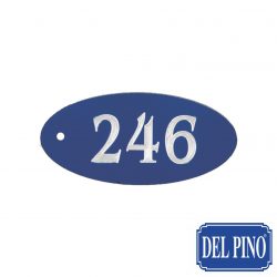 Colgante en aluminio azul de 1 mm Gr. Ovalada de 75 x 35mm. En el precio marcado entra 3 números para mas líneas o números ver Tarifa A página 40.