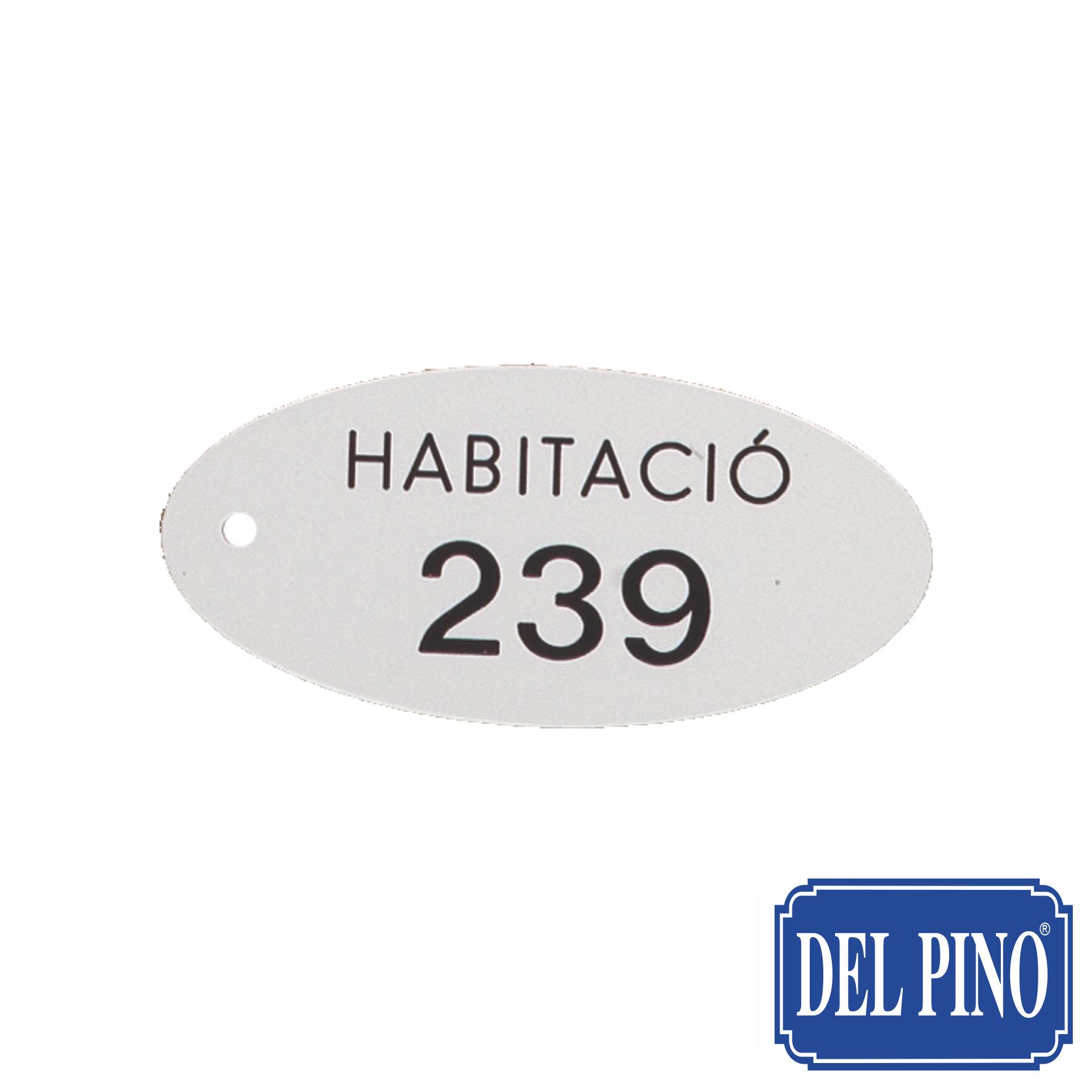 Colgante en aluminio plata de 1 mm Gr. Ovalada de 75 x 35mm. En el precio marcado entra 2 líneas para mas líneas o números ver Tarifa A página 40.