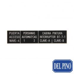 Placa en formica negra para cuadro eléctrico. Medida 115 x 25mm. En este precio entran 10 líneas con un total de 4 divisiones para otros casos ver Tarifa A página 39.