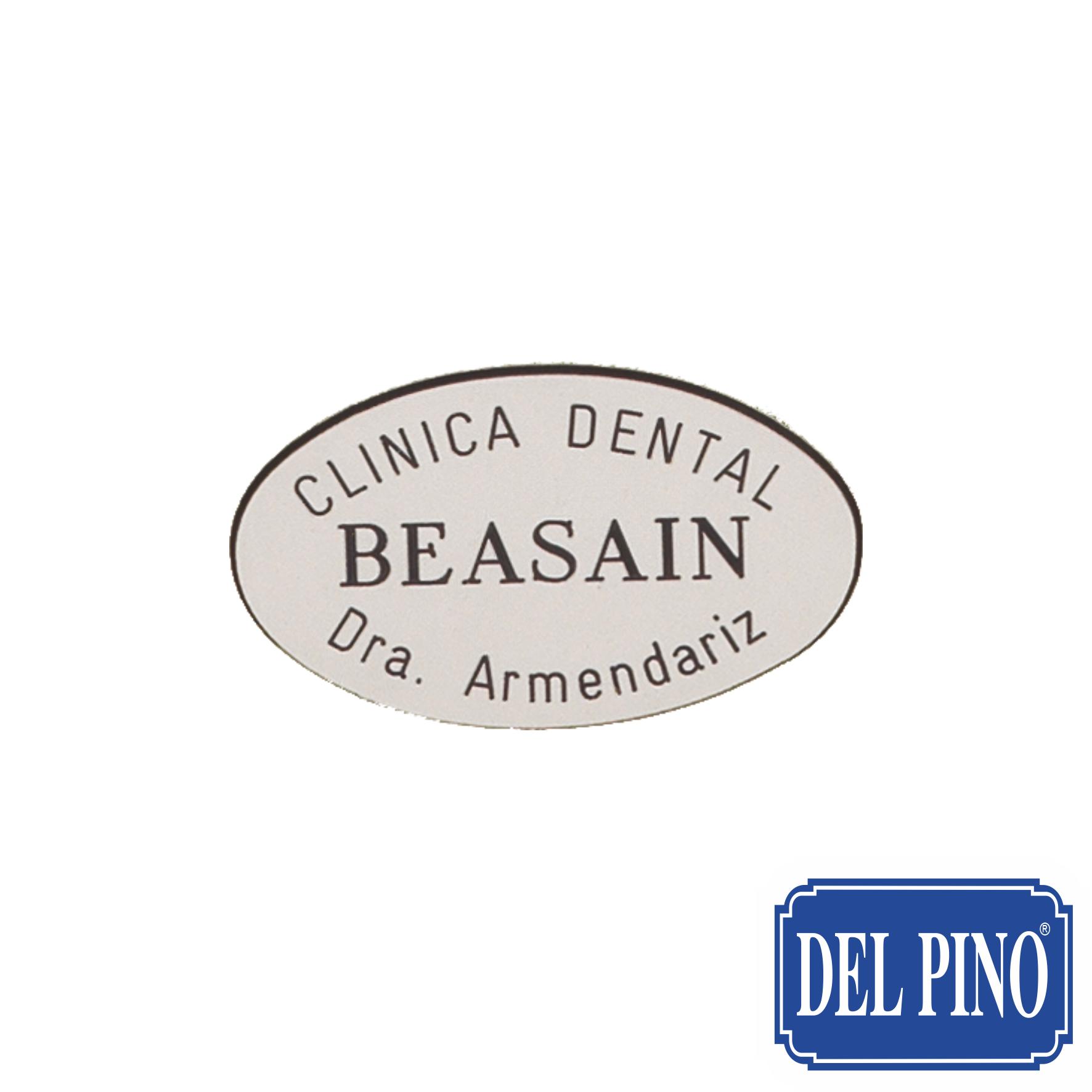 Imperdible en formica blanca ovalada. Medida 60 x 35mm. Precio con un máximo de 3 lineas grabación en forma circular. Este precio es valido de 1 a 9 unidades. Para otras opciones vea precios en Tarifa A página 41.