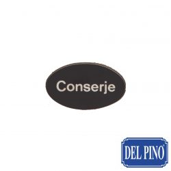 Imperdible en formica negra ovalada. Medida 50 x 30mm. Precio con un máximo de 1 linea en el caso de grabacion en recto y de 2 lineas en caso de grabacion en semicircunferencia. Este precio es valido de 1 a 9 unidades. Para otras opciones vea precios en Tarifa A página 41.