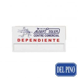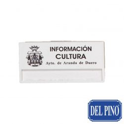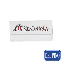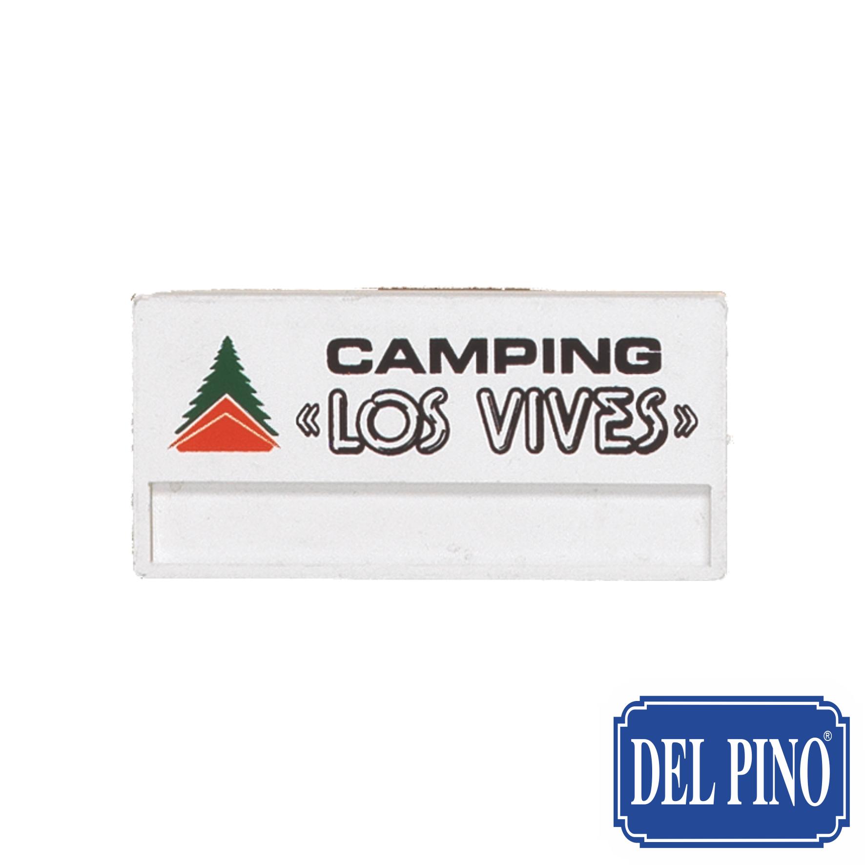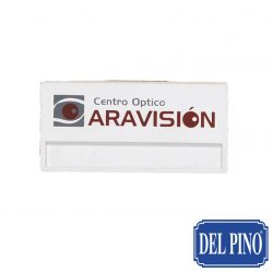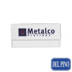 Imperdible de plástico inyectado blanco y negro con logos y textos en vinilo transparente con impresion digital o serigrafía. A 1 o 2 colores. Medida 74 x 34mm. PEDIDO MINIMO DE TRES UNIDADES. Ver precios en Tarifa A página 41.