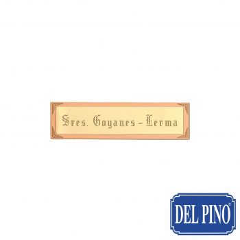 Placa grabada para puerta en aluminio bronce mate(120×30 mm) con fondo aluminio oro mate(130×40 mm). En el precio marcado entra 1 linea y 52cm2. Ver precios en Tarifa A página 1.