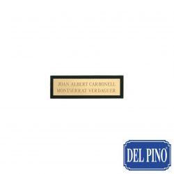 Placa grabada para puerta en latón brillo(100 x 25mm) con fondo fórmica negra (110 x 35mm). Letra sin pintar. En el precio marcado entra 1 linea y 39cm2. Ver precios en Tarifa A página 1.