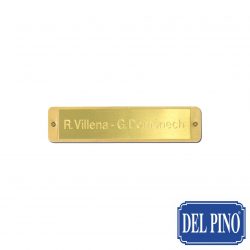 Placa grabada para puerta en latón mate(160 x 36mm) con fondo latón brillo(185 x 43mm) con forma-3. Letra sin pintar. En el precio marcado entra 1 linea y 80cm2. Ver precios en Tarifa A página 1.