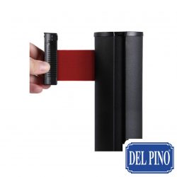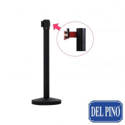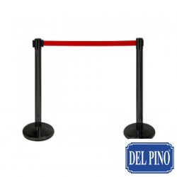 1 Poste separador de acero inoxidable lacado en color negro con cinta extensible color roja de 3 m.