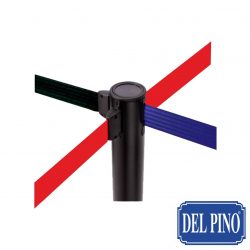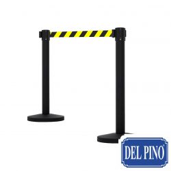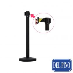 1 Poste separador de acero inoxidable lacado en color negro con cinta extensible color amarilla/negra de 3 m.