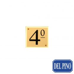 Placa serigrafiada en aluminio oro mate 10×10 cm con soporte aluminio oro brillo 11×11 cm. Ver precios en Tarifa A página 5.