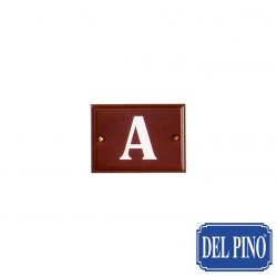 Placa con vinilo blanco impreso en madera color nogal 11×8 cm. Ver precios en Tarifa A página 7.