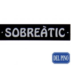 Placa con vinilo plata impreso en madera color negro 35×8 cm. Ver precios en Tarifa A página 7.