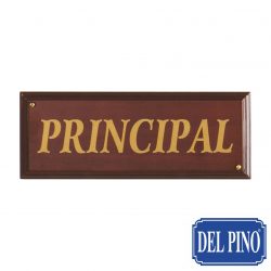 Placa con vinilo oro impreso en madera color nogal 29×11 cm. Ver precios en Tarifa A página 7.