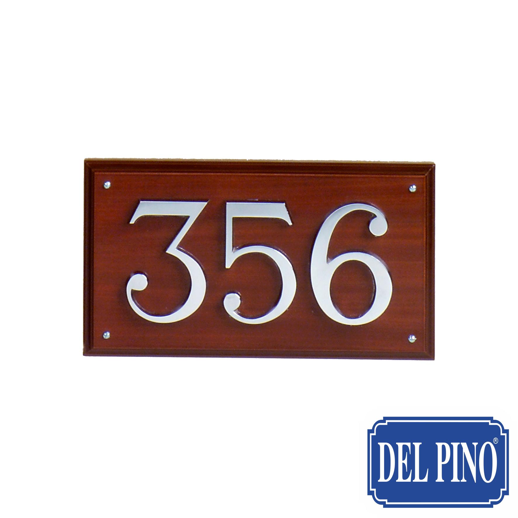 Madera nogal de 34×19 cm con numeros cromado brillo de 12 cm. La terminación de letra se puede cambiar elija la terminación que desee de no hacerlo se le servirá en la terminación que aparece en el catálogo. Ver precios en Tarifa A página 12.