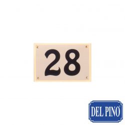 Placa de aluminio oro mate de 18×12 cm con fondo aluminio oro brillo de 19×13 cm. Precio válido para un máximo de cuatro números por placa si desea algún número más consulten en la tarifa. Si es adhesiva también lleva un suplemento en el precio. Ver precios en Tarifa A página 17.